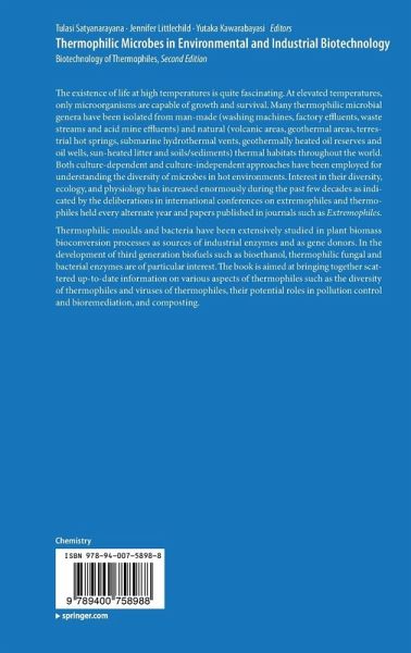 The existence of life at high temperatures is quiet fascinating. At elevated temperatures, only microorganisms are capable of growth and survival. Many thermophilic microbial genera have been isolated from man-made (washing machines, factory effluents, waste streams and acid mine effluents) and natural (volcanic areas, geothermal areas, terrestrial hot springs, submarine hydrothermal vents, geothermally heated oil reserves and oil wells, sun-heated litter and soils/sediments) thermal habitats throughout the world. Both culture-dependent and culture-independent approaches have been employed for understanding the diversity of microbes in hot environments. Interest in their diversity, ecology, and physiology has increased enormously during the past few decades as indicated by the deliberations in international conferences on extremophiles and thermophiles held every alternate year and papers published in journals such as Extremophiles.Thermophilic moulds and bacteria have been extensively studied in plant biomass bioconversion processes as sources of industrial enzymes and as gene donors. In the development of third generation biofuels such as bioethanol, thermophilic fungal and bacterial enzymes are of particular interest. The book is aimed at bringing together scattered up-to-date information on various aspects of thermophiles such as the diversity of thermophiles and viruses of thermophiles, their potential roles in pollution control and bioremediation, and composting.