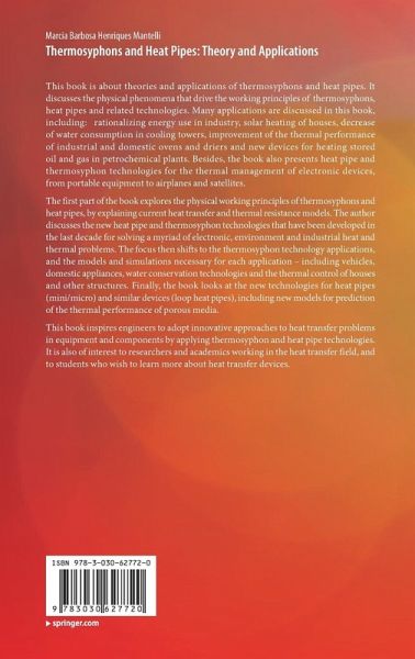 The first part of the book explores the physical working principles of thermosyphons and heat pipes, by explaining current heat transfer and thermal resistance models. The author discusses the new heat pipe and thermosyphon technologies that have been developed in the last decade for solving a myriad of electronic, environment and industrial heat and thermal problems. The focus then shifts to the thermosyphon technology applications, and the models and simulations necessary for each application - including vehicles, domestic appliances, water conservation technologies and the thermal control of houses and other structures. Finally, the book looks at the new technologies for heat pipes (mini/micro) and similar devices (loop heat pipes), including new models for prediction of the thermal performance of porous media.
