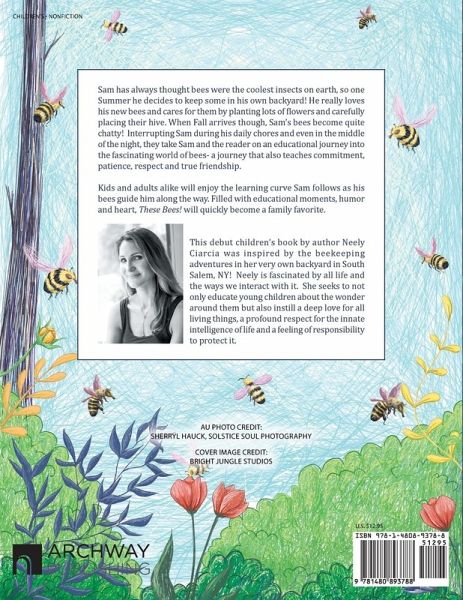 Sam has always thought bees were the coolest insects on earth, so one Summer he decides to keep some in his own backyard! He really loves his new bees and cares for them by planting lots of flowers and carefully placing their hive. When Fall arrives though, Sam's bees become quite chatty! Interrupting Sam during his daily chores and even in the middle of the night, they take Sam and the reader on an educational journey into the fascinating world of bees- a journey that also teaches commitment, patience, respect and true friendship. Kids and adults alike will enjoy the learning curve Sam follows as his bees guide him along the way. Filled with educational moments, humor and heart, These Bees! will quickly become a family favorite.