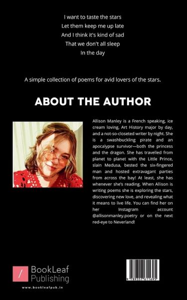 ""I want to taste the stars Let them keep me up late And I think it's kind of sad That we don't all sleep In the day A simple collection of poems for avid lovers of the stars.""