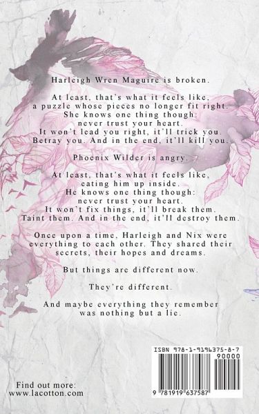 From USA Today and Wall Street Journal bestselling author L A Cotton comes an angsty and gritty romance duet. Harleigh Wren Maguire is broken. At least, that's what it feels like, a puzzle whose pieces no longer fit right. She knows one thing though: never trust your heart. It won't lead you right, it'll trick you. Betray you. And in the end, it'll kill you. Phoenix Wilder is angry. At least, that's what it feels like, eating him up inside. He knows one thing though: never trust your heart. It won't fix things, it'll break them. Taint them. And in the end, it'll destroy them. Once upon a time, Harleigh and Nix were everything to each other. They shared their secrets, their hopes and dreams. But things are different now. They're different. And maybe everything they remember was nothing but a lie. * These Dirty Lies is the first book in Nix and Harleigh's duet. Due to mature content that some readers may find distressing, this book is recommended for readers 17+