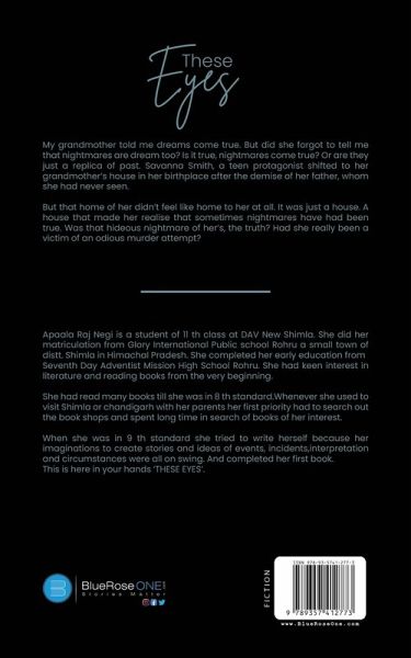 Long ago a teenage girl Savanna lived with her mother. But later on due to some circumstances, they had to shift to live with her grandmother at their native place because her father had passed away. At her native place, she felt that someone had tried to kill her. Someone who had different eye colors. It's a mystic story. Savanna tried to find out who the same person was as her friend Joe and Sam. The whole story revolves around 'THESE EYES'. Finally, Savanna felt that it was her mother who tried to kill and she left her native home and took shelter at her friend's home. But then all the circumstances reveal that it was not her mother. Then who was it? ..... it was a person who had different eye colors.... But who was it? Eventually, Savanna's grandmother solved the whole mystery of 'THESE EYES' and said it was a person who had different eye colors. But who was it? This is the whole mystery of 'THESE EYES'