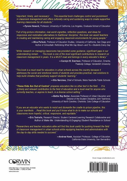 "Important, timely, and necessary! . . . This essential book challenges control and punishment in classroom management and offers culturally caring and sustaining ways to create supportive learning classrooms for all students." - Tyrone Howard, Professor UCLA Graduate School of Education