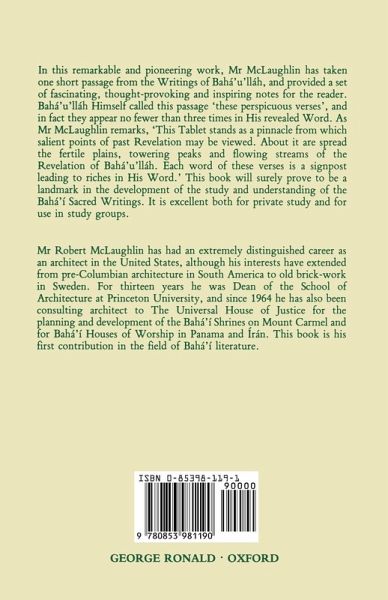 Mr McLaughlin has taken a short passage from the Writings of Bahá'u'lláh and provided a set of fascinating, thought provoking and inspiring notes for the reader.