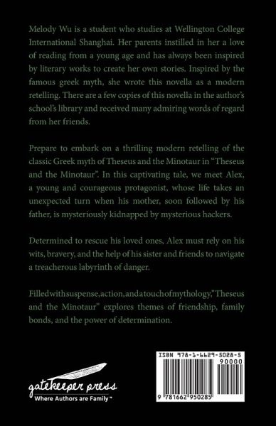 Prepare to embark on a thrilling modern retelling of the classic Greek myth of Theseus and the Minotaur in "Theseus and the Minotaur". In this captivating tale, we meet Alex, a young and courageous protagonist, whose life takes an unexpected turn when his mother, soon followed by his father, is mysteriously kidnapped by mysterious hackers. Determined to rescue his loved ones, Alex must rely on his wits, bravery, and the help of his sister and friends to navigate a treacherous labyrinth of danger. Filled with suspense, action, and a touch of mythology,"Theseus and the Minotaur" explores themes of friendship, family bonds, and the power of determination.