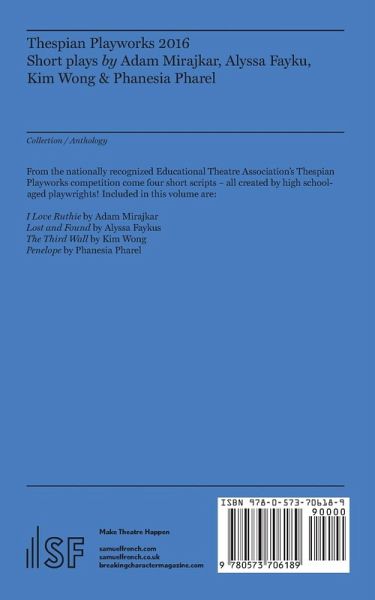 From the nationally recognized Educational Theatre Association's Thespian Playworks competition come four short scripts - all created by high school-aged playwrights! Included in this volume are: I Love Ruthie by Adam Mirajkar Lost and Found