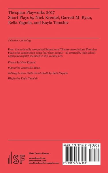 From the nationally recognized Educational Theatre Association's Thespian Playworks competition come four short scripts - all created by high school-aged playwrights! Included in this volume are: Flopsie by Nick Krentel Pigeon! by Garrett M. Ryan Talking to Your Child About Death by Bella Yaguda Waylen by Kayla Temshiv
