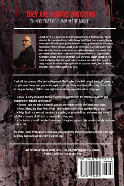 "They, Are Always Watching: those things that go bump in the night" is a nightmare-inducing short story horror book delivered with a hard gut punch. These tales' settings span from rural anywhere to inner-city anytime. Each one resonates with unique disturbing terror. This book is a great gift for horror fans, fans of "gotcha" endings, and fans of unconventional horror. These terrifying stories include "Momma" a mother who does anything to keep her family together. "The Van" where musicians take a circuitous route to a gig through hell. "Out House" is a convenient and deadly device. Then there is "Simone" a female vampire enraptured with only drinking clean clear blood. These breathtakingly horrific stories will have you questioning those things that go bump in the night. Are they just sounds, or are THEY watching you!