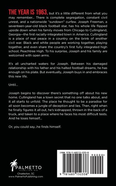 The year is 1963, but it's a little different from what you may remember... There is complete segregation, constant civil unrest, and a nationwide "sundown" curfew. Joseph Freeman, a seventeen-year-old black football star, has his whole life flipped upside down when his family moves from Chicago to Cullingland, Georgia-the first racially-integrated town in America. Cullingland is a place of real peace in a country on the brink of another civil war. Black and white people are working together, playing together, and even living next door to one another. To his surprise, Joseph and his family are welcomed with open arms. It's all uncharted waters for Joseph. Between his damaged relationship with his father and his halted football dreams, he has enough on his plate. But eventually, Joseph buys in and embraces this new life. Until... Joseph begins to discover there's something off about his new home. Cullingland has a town secret that no one talks about, and it all starts to unfold. The place he thought to be a paradise for all soon becomes a jungle of deception and lies. Then, right when he finally figures it all out, he's kidnapped, thrown in the back of a truck, and taken to a place where he faces his most difficult tests. And he loses himself... Or, you could say...he finds himself.