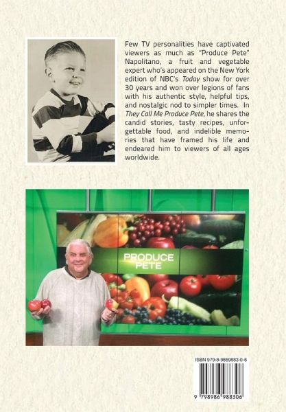 Pete Napolitano began his career in the produce industry in the early 1950s at the tender age of five, peddling fruit and vegetables door-to-door to help support his family's New Jersey-based produce business. "Discovered" at his store by a TV producer decades later and given the moniker "Produce Pete," he's since become a fixture on WNBC's Weekend Today in New York show, where his tips on selecting, storing, and preparing various produce items - all shared in his authentic, endearing, and plain-speaking style - have captivated viewers in metro New York and other U.S. and international markets for 30 years and rendered him one of the longest-running segments in TV history. In They Call Me Produce Pete, Napolitano shares candid memories of growing up poor in post-WWII America, striving to achieve the American Dream, and landing unexpected fame as one of the nation's leading experts on produce. Sprinkled with touching stories, photos, and family recipes that have held a special place in his heart throughout his life, They Call Me Produce Pete is a nostalgic nod to simpler times and a must-read for anyone who dares to dream the impossible.