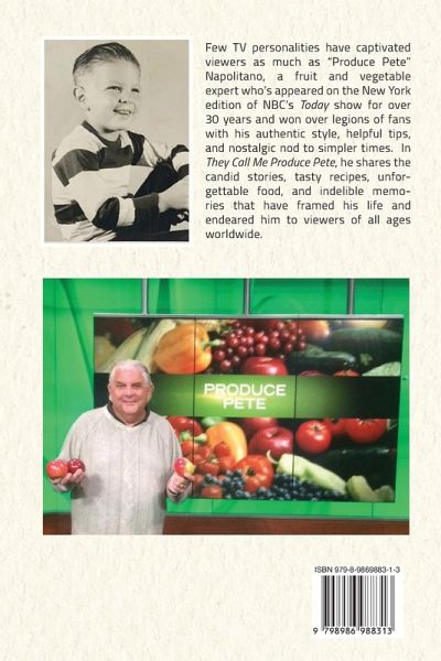 Pete Napolitano began his career in the produce industry in the early 1950s at the tender age of five, peddling fruit and vegetables door-to-door to help support his family's New Jersey-based produce business. "Discovered" at his store by a TV producer decades later and given the moniker "Produce Pete," he's since become a fixture on WNBC's Weekend Today in New York show, where his tips on selecting, storing, and preparing various produce items - all shared in his authentic, endearing, and plain-speaking style - have captivated viewers in metro New York and other U.S. and international markets for 30 years and rendered him one of the longest-running segments in TV history. In They Call Me Produce Pete, Napolitano shares candid memories of growing up poor in post-WWII America, striving to achieve the American Dream, and landing unexpected fame as one of the nation's leading experts on produce. Sprinkled with touching stories, photos, and family recipes that have held a special place in his heart throughout his life, They Call Me Produce Pete is a nostalgic nod to simpler times and a must-read for anyone who dares to dream the impossible.