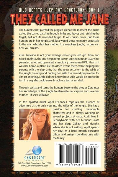 The hunter's shot pierced the jungle's silence the moment the bullet exited the barrel, passing through limbs and leaves until striking the target, but not its intended target. It was Zura's mom. But these hunters are in her jungle, and Zura would show no mercy, especially to the man who shot her mother. In a merciless jungle, no one can hear you scream. Zura Jameson is not your average eleven-year old girl. Born and raised in Africa, she and her parents live on an elephant sanctuary her parents created and operated, a sanctuary they named Wild Hearts. It was her home, a place like no other. It was there, while helping her parents with the elephants, that she grew accustom to the wilds of the jungle, training and honing her skills that would prepare her for almost anything. Little did she know those skills would be put to the test in a way she could never imagine, a test of survival. Through twists and turns the hunters become the prey as Zura uses her knowledge of the jungle to eliminate her captors and save her mother…if she's still alive. In this spirited novel, April O'Connell captures the essence of adventure as she pulls you into the wilds of the jungle. She has a passion for creating memorable characters