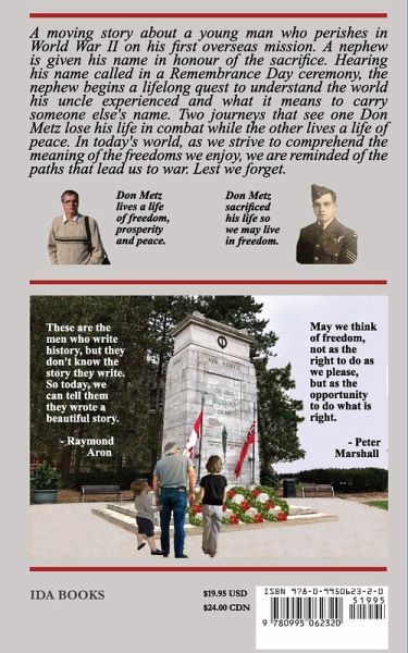 A moving story about a young man who perishes in World War II on his first overseas mission. His nephew is given his name in honour of the sacrifice. Hearing his name called in a Remembrance Day ceremony, the nephew begins a lifelong quest to understand the world his uncle experienced and what it means to carry someone else's name. In today's world, as we strive to comprehend the meaning of the freedoms we enjoy, we are reminded of the paths that lead us to war. Lest we forget.