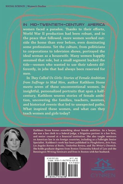 In mid-twentieth-century America, women faced a paradox. Thanks to their efforts, World War II production had been robust, and in the peace that followed, more women worked outside the home than ever before, even dominating some professions. Yet the culture, from politicians to corporations to television shows, portrayed the ideal woman as a housewife. Many women happily assumed that role, but a small segment bucked the tide-women who wanted to use their talents differently, in jobs that had always been reserved for men. In They Called Us Girls: Stories of Female Ambition from Suffrage to Mad Men, author Kathleen Stone meets seven of these unconventional women. In insightful, personalized portraits that span a half-century, Kathleen weaves stories of female ambition, uncovering the families, teachers, mentors, and historical events that led to unexpected paths. What inspired these women, and what can they teach women and girls today?