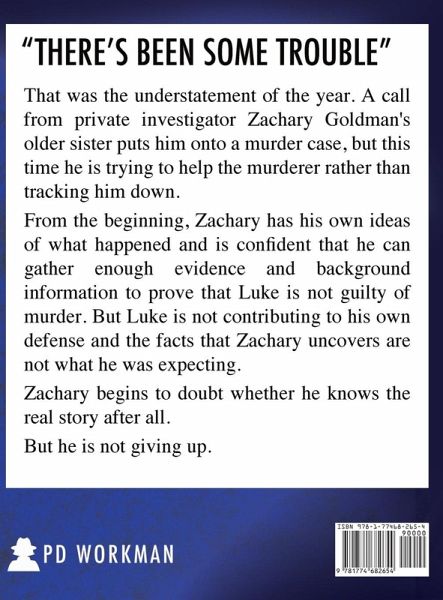 There's been some trouble That was the understatement of the year. A call from private investigator Zachary Goldman's older sister puts him on to a murder case, but this time he is trying to help the murderer rather than tracking him down. From the beginning, Zachary has his own ideas of what happened and is confident that he can gather enough evidence and background information to prove that Luke is not guilty of murder. But Luke is not contributing to his own defense and the facts that Zachary uncovers are not what he was expecting. Zachary begins to doubt whether he knows the real story after all. But he is not giving up. ¿¿Zachary Goldman, Private Investigator, is flawed with a capital F. Shattered by the tragedies of his own life, he will somehow still manage to pick himself up and dig just a little bit deeper than anyone else to piece together the vital clues and solve the mystery. Maybe being broken makes it easier for others who have faced tragedy to trust him. Walk with Zachary as he solves cases that will stretch his abilities to the limit. Even with his own life in shambles, Zachary Goldman is still the one you want on the case. ---- LARGE PRINT EDITION This edition has been formatted with Atkinson Hyperlegible 18 pt, 1.5 line spacing, and double-spaced paragraphs in accordance with the recommendations of the American Council for the Blind.