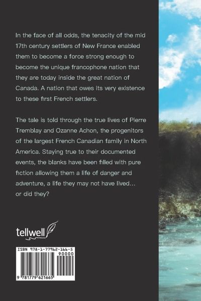 In the face of all odds, the tenacity of the mid 17th century settlers of New France enabled them to become a force strong enough to become the unique francophone nation that they are today inside the great nation of Canada. A nation that owes its very existence to these first French settlers. The tale is told through the true lives of Pierre Tremblay and Ozanne Achon, the progenitors of the largest French Canadian family in North America. Staying true to their documented events, the blanks have been filled with pure fiction allowing them a life of danger and adventure, a life they may not have lived... or did they?