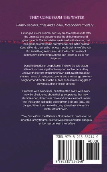 Family secrets, grief and a dark, foreboding mystery… Estranged sisters Summer and Joy are forced to reunite after the untimely and gruesome deaths of their mother and grandparents.The two sisters are tasked with cleaning out their grandparents' home on Palmetto Lake in the heart of Central Florida during the hottest, most brutal time of the year. But something seems amiss in the bucolic lakefront community. Something Summer can't seem to place her finger on. Despite decades of unspoken animosity, the two sisters attempt to come together to support each other as they uncover the terrors of their unknown past. Questions about the true nature of their grandparents and the strange lakefront neighborhood bubble to the surface as Summer struggles to stay focused on the task at hand. However, with every layer the sisters strip away, with every new bit of evidence about their grandparents that they stumble upon, it becomes more and more clear to Summer that they aren't just going dealing with grief and loss… but danger. When it comes to the past, sometimes the truth is better left unknown. They Come From the Water is a Florida Gothic meditation on inherited family trauma, destructive secrets and dark dangers that lurk just beneath the surface. *Content warnings: Addiction, adultery, murder, suicide, self-harm, animal death and gore.