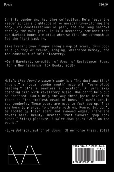 These poems explore the complexities of interpersonal relationships with equal measure of nostalgia, horror, and hope. Mela's words find strength in fragility and heal brutal wounds by exposure.