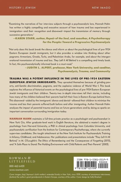 Foreword: In the Shadow of the Sthetl Preface: They Left It All Behind Acknowledgments Introduction Dramatic Personae 1 They Left It All Behind and the Disavowal of Loss 2 Communicating about the Past and Trauma 3 Missing the Old Country and Life in America 4 Childhood: Growing Up in America 5 The First Generation: Adulthood Conclusions: From Silence to Connection: Memory, History, Trauma, and Loss Appendix A: Questionnaire: Eastern European Jewish Immigrants and Their Children in America Appendix B: Research Approach Glossary: Yiddish Words and Other Terms References About the Author