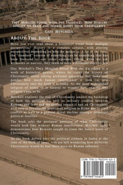 Have you ever read about a historical event from multiple perspectives? History is a complex subject, with altering perspectives depending on who the author is. A lot of the time, the "standard" version of something can be something that has been doctored to suit other agendas. Often, when we ask witnesses or natives, they seem to have a different story to tell. Guy Mitchell's They Mingled Blood With the Sacrifices is a work of historical genius, where he traces the history of Christianity while asking profound questions that make you ponder how much human interference it took to turn Christianity into the faith it is today. As the most widespread religion of today, it is natural to wonder how exactly this religion came to be. Mitchell explores the rise of Christianity amidst the backdrop of both the political as well as military conflict between Romans and Jews and the lasting impact it had on Christianity as it rose to become the prominent religion in Rome due to civil conflict as well as a general moral decline amongst dominant political families. The book asks the pertinent question of what Christianity would look like without Roman interference. Mitchell aptly demonstrates how Romans sought to erase the Judaic roots of Christianity. As the book delves into the political climate in Judea at the time of the birth of Jesus, you are left wondering how different Christianity would be had there been no Roman influence.