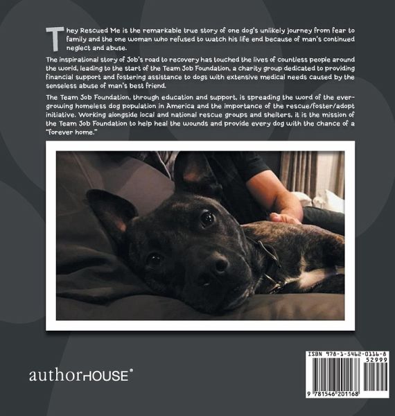 They Rescued Me is the remarkable true story of one dog's unlikely journey from fear to family and the one woman who refused to watch his life end because of man's continued neglect and abuse. The inspirational story of Job's road to recovery has touched the lives of countless people around the world, leading to the start of the Team Job Foundation, a charity group dedicated to providing financial support and fostering assistance to dogs with extensive medical needs caused by the senseless abuse of man's best friend. The Team Job Foundation, through education and support, is spreading the word of the ever-growing homeless dog population in America and the importance of the rescue/foster/adopt initiative. Working alongside local and national rescue groups and shelters, it is the mission of the Team Job Foundation to help heal the wounds and provide every dog with the chance of a "forever home."