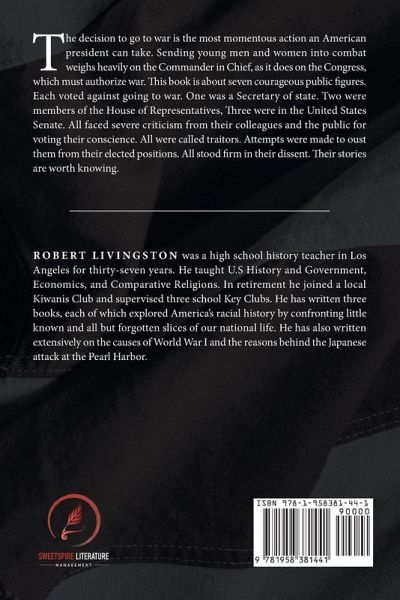 The decision to go to war is the most momentous action an American president can take. Sending young men and women into combat weighs heavily on the Commander in Chief, as it does on the Congress, which must authorize war. This book is about seven courageous public figures. Each voted against going to war. One was a Secretary of state. Two were members of the House of Representatives, Three were in the United States Senate. All faced severe criticism from their colleagues and the public for voting their conscience. All were called traitors. Attempts were made to oust them from their elected positions. All stood firm in their dissent. Their stories are worth knowing.
