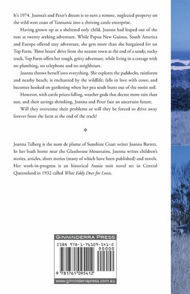 It's 1974. Joanna's and Peter's dream is to turn a remote, neglected property on the wild west coast of Tasmania into a thriving cattle enterprise. Having grown up as a sheltered only child, Joanna had leaped out of the nest at twenty seeking adventure. While Papua New Guinea, South America and Europe offered easy adventure, she gets more than she bargained for on Top Farm. Three hours' drive from the nearest town at the end of a sandy, rocky track, Top Farm offers her tough, gritty adventure, while living in a cottage with no plumbing, no telephone and no neighbours. Joanna throws herself into everything. She explores the paddocks, rainforest and nearby beach; is enchanted by the wildlife; falls in love with cows; and becomes hooked on gardening when her pea seeds burst out of the moist soil. However, with cattle prices falling, weather gods that decree more rain than sun, and their savings shrinking, Joanna and Peter face an uncertain future. Will they overcome their problems or will they be forced to drive away forever from the farm at the end of the track?