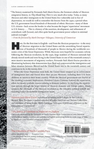 Here, for the first time in English?and from the Mexican perspective?is the story of Mexican migration to the United States and the astonishing forced repatriation of hundreds of thousands of people to Mexico during the worldwide economic crisis of the Great Depression. While Mexicans were hopeful for economic reform following the Mexican revolution, by the 1930s, large numbers of Mexican nationals had already moved north and were living in the United States in one of the twentieth century's most massive movements of migratory workers. Fernando Saul Alanis Enciso provides an illuminating backstory that demonstrates how fluid and controversial the immigration and labor situation between Mexico and the United States was in the twentieth century and continues to be in the twenty-first. When the Great Depression took hold, the United States stepped up its enforcement of immigration laws and forced more than 350,000 Mexicans, including their U.S.-born children, to return to their home country. While the Mexican government was fearful of the resulting economic implications, President Lazaro Cardenas fostered the repatriation effort for mostly symbolic reasons relating to domestic politics. In clarifying the repatriation episode through the larger history of Mexican domestic and foreign policy, Alanis connects the dots between the aftermath of the Mexican revolution and the relentless political tumult surrounding today's borderlands immigration issues.