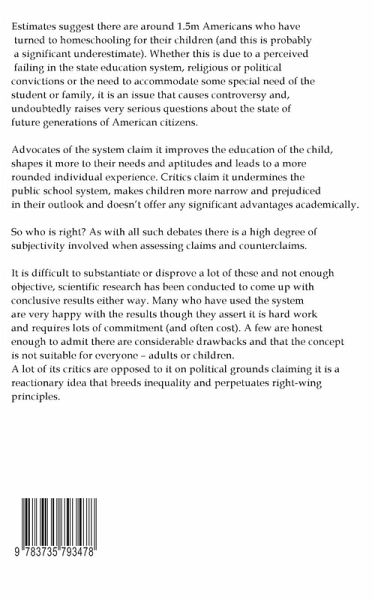 Is homeschooling a reasonable alternative to the classical school system?Estimates suggest there are at least 1.5m Americans who have turned to homeschooling for their children. Whether this is due to a perceived failing in the state education system, religious or political convictions or the need to accommodate some special need of the student or family, it is an issue that causes controversy and, undoubtedly raises very serious questions about the state of future generations of American citizens. Advocates of the system claim it improves the education of the child, shapes it more to their needs and aptitudes and leads to a more rounded individual experience. Critics claim it undermines the public school system, makes children more narrow and prejudiced in their outlook and doesn't offer any significant advantages academically. So who is right? As with all such debates there is a high degree of subjectivity involved when assessing claims and counterclaims. It is difficult to substantiate or disprove a lot of these and not enough objective, scientific research has been conducted to come up with conclusive results either way. Many who have used the system are very happy with the results though they assert it is hard work and requires lots of commitment (and often cost). A few are honest enough to admit there are considerable drawbacks and that the concept is not suitable for everyone - adults or children. A lot of its critics are opposed to it on political grounds claiming it is a reactionary idea that breeds inequality and perpetuates right-wing principles. Others oppose the association with religious beliefs, though there is no strong evidence that this is a major factor in most decisions to homeschool. Homeschooling has had a long, hard road to acceptance. It has been equated with truancy and illegality and has been criticized and pilloried often by people who know little about it.