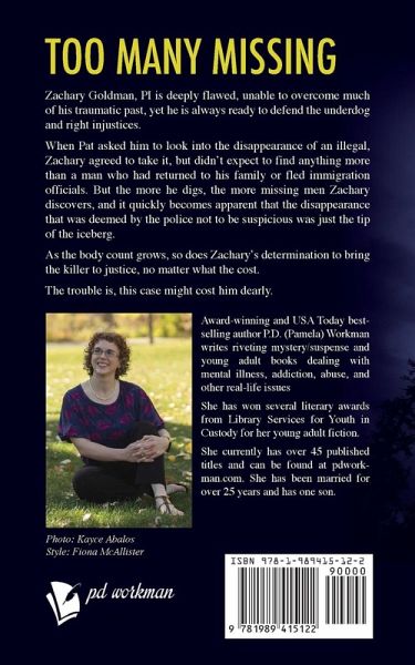 From USA Today Bestselling Author, P.D. Workman! Too many missing men Zachary Goldman, PI is deeply flawed, unable to overcome much of his traumatic past, yet he is always ready to defend the underdog and right injustices. When Pat asked him to look into the disappearance of an illegal, Zachary agreed to take it, but didn't expect to find anything more than a man who had returned to his family or fled immigration officials. But the more he digs, the more missing men Zachary discovers, and it quickly becomes apparent that the disappearance that was deemed by the police not to be suspicious was…mehr