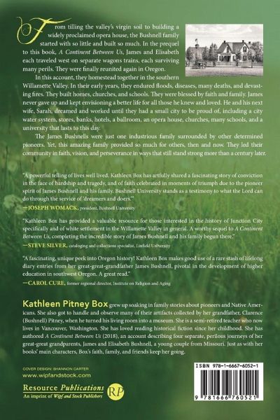 From tilling the valley's virgin soil to building a widely proclaimed opera house, the Bushnell family started with so little and built so much. In the prequel to this book, A Continent Between Us, James and Elisabeth each traveled west on separate wagons trains, each surviving many perils. They were finally reunited again in Oregon. In this account, they homestead together in the southern Willamette Valley. In their early years, they endured floods, diseases, many deaths, and devasting fires. They built homes, churches, and schools. They were blessed by faith and family. James never gave up and kept envisioning a better life for all those he knew and loved. He and his next wife, Sarah, dreamed and worked until they had a small city to be proud of, including a city water system, stores, banks, hotels, a ballroom, an opera house, churches, many schools, and a university that lasts to this day. The James Bushnells were just one industrious family surrounded by other determined pioneers. Yet, this amazing family provided so much for others, then and now. They led their community in faith, vision, and perseverance in ways that still stand strong more than a century later.