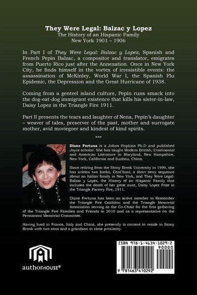 They Were Legal: Balzac y Lopez The History of an Hispanic Family New York 1901 - 1906 In Part I of They Were Legal: Balzac y Lopez, Spanish and French Pepín Balzac, a compositor and translator, emigrates from Puerto Rico just after the Annexation. Once in New York City, he finds himself in the vortex of irresistible events: the assassination of McKinley, World War I, the Spanish Flu Epidemic, the Depression and the Great Hurricane of 1938. Coming from a genteel island culture, Pepín runs smack into the dog-eat-dog immigrant existence that kills his sister-in-law, Daisy Lopez in the Triangle Fire 1911. Part II presents the tears and laughter of Nena, Pepín's daughter - weaver of tales, preserver of the past, mother and surrogate mother, avid moviegoer and kindest of kind spirits.