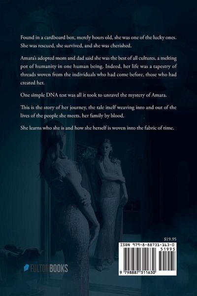 Found in a cardboard box, merely hours old, she was one of the lucky ones. She was rescued, she survived, and she was cherished. Amara's adopted mom and dad said she was the best of all cultures, a melting pot of humanity in one human being. Indeed, her life was a tapestry of threads woven from the individuals who had come before, those who had created her. One simple DNA test was all it took to unravel the mystery of Amara. This is the story of her journey, the tale itself weaving into and out of the lives of the people she meets, her family by blood. She learns who she is and how she herself is woven into the fabric of time.