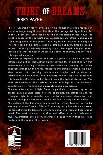 Thief of Dreams by Jerry Payne is a crime thriller that takes readers on a captivating journey through the life of the protagonist, Kyle Stone. Set in the vibrant and tumultuous city of San Francisco in the 1980s, the novel is based on the author's own experiences and offers a unique and fresh perspective on the genre. The story follows Kyle as he navigates the challenges of building a financial empire, but every time he faces a setback, he is mysteriously saved by a guardian angel or higher power, leaving him and the reader wondering about the identity and motive of this mysterious savior. The novel is expertly crafted and offers a perfect balance of mystery, intrigue and action. The author slowly unveils the explanation for this phenomenon, creating a sense of anticipation and keeping the reader engaged throughout the novel. Alongside the crime elements, the novel also delves into touching relationship stories and provides an informative and educational family history. The portrayal of the Mafia in this book is refreshing and different from the typical stereotype. The book also balances the serious themes with lighthearted moments, providing a well-rounded and enjoyable reading experience. The characterization of Kyle Stone is particularly noteworthy as the author paints a vivid picture of the character, his struggles and his triumphs. Kyle is a complex and multi-dimensional character, who evolves throughout the novel, and his arc is satisfying and relatable. The ending of the book is dramatic and satisfying, leaving the reader wanting for more. Overall, Thief of Dreams by Jerry Payne is a must-read for fans of crime thrillers and anyone looking for a fresh and captivating novel. The book is expertly crafted and offers a perfect balance of mystery, intrigue and action, making it a page-turner that will keep readers on the edge of their seats.