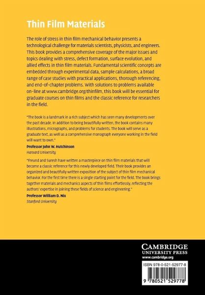 Thin film mechanical behavior and stress presents a technological challenge for materials scientists, physicists and engineers. This book provides a comprehensive coverage of the major issues and topics dealing with stress, defect formation, surface evolution and allied effects in thin film materials. Physical phenomena are examined from the continuum down to the sub-microscopic length scales, with the connections between the structure of the material and its behavior described. Theoretical concepts are underpinned by discussions on experimental methodology and observations. Fundamental scientific concepts are embedded through sample calculations, a broad range of case studies with practical applications, thorough referencing, and end of chapter problems. With solutions to problems available on-line, this book will be essential for graduate courses on thin films and the classic reference for researchers in the field.