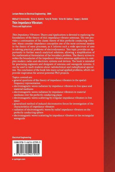 "The presented method is meant to improve and widen the application of vibrator antennas, taking into account their mobility and reliability in various nonstandard environments, and to offer suggestions for further research in this field. ... this book is a valuable literature on the state-of-the-art in the theory of thin impedance vibrators not only to professional researchers but also for graduate students in this field." (Vladimir Cadez, Zentralblatt MATH, Vol. 1243, 2012)