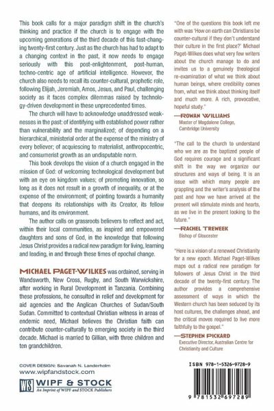 This book calls for a major paradigm shift in the church's thinking and practice if the church is to engage with the upcoming generations of the third decade of this fast-changing twenty-first century. Just as the church has had to adapt to a changing context in the past, it now needs to engage seriously with this post-enlightenment, post-human, techno-centric age of artificial intelligence. However, the church also needs to recall its counter-cultural, prophetic role, following Elijah, Jeremiah, Amos, Jesus, and Paul, challenging society as it faces complex dilemmas raised by technology-driven development in these unprecedented times. The church will have to acknowledge unaddressed weaknesses in the past: of identifying with established power rather than vulnerability and the marginalized; of depending on a hierarchical, ministerial order at the expense of the ministry of every believer; of acquiescing to materialist, anthropocentric, and consumerist growth as an undisputable norm. This book develops the vision of a church engaged in the mission of God: of welcoming technological development but with an eye on kingdom values; of promoting innovation, so long as it does not result in a growth of inequality, or at the expense of the environment; of pointing towards a humanity that deepens its relationships with its Creator, its fellow humans, and its environment. The author calls on grassroots believers to reflect and act, within their local communities, as inspired and empowered daughters and sons of God, in the knowledge that following Jesus Christ provides a radical new paradigm for living, learning and leading, in and through these times of epochal change.