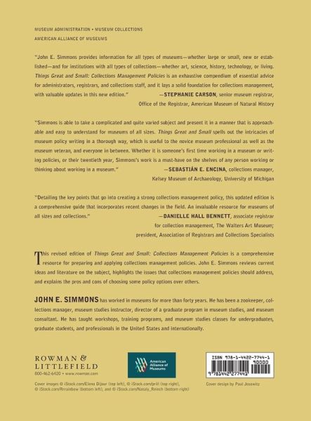 This revised edition of Things Great and Small is a comprehensive resource for preparing and applying collections management policies. Simmons reviews current ideas and literature on the subject, highlights the issues that collections management policies should address, and explains the pros and cons of choosing some policy options over others.