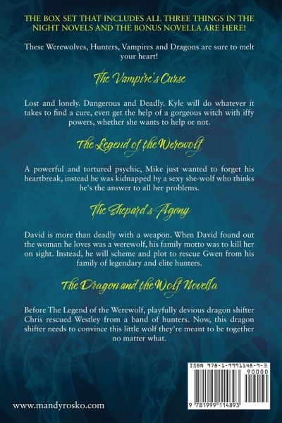 These Werewolves, Hunters, Vampires and Dragons are sure to melt your heart! The Vampire's Curse Lost and lonely. Dangerous and Deadly. Kyle will do whatever it takes to find a cure, even get the help of a gorgeous witch with iffy powers, whether she wants to help or not. The Legend of the Werewolf A powerful and tortured psychic, Mike just wanted to forget his heartbreak, instead he was kidnapped by a sexy she-wolf who thinks he's the answer to all her problems. The Shepard's Agony David is more than deadly with a weapon. When David found out the woman he loves was a werewolf, his family motto was to kill her on sight. Instead, he will scheme and plot to rescue Gwen from his family of legendary and elite hunters. The Dragon and the Wolf (A Novella) Before The Legend of the Werewolf, playfully devious dragon shifter Chris rescued Westley from a band of hunters. Now, this dragon shifter needs to convince this little wolf they're meant to be together no matter what.