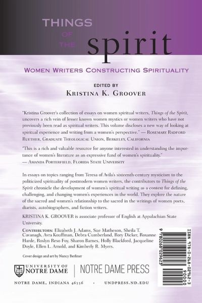 In essays on topics ranging from Teresa of Avila's sixteenth-century mysticism to the politicized spirituality of postmodern women writers, the contributors to Things of the Spirit chronicle the development of women's spiritual writing as a context for defining, challenging, and changing women's experiences in the world. They explore the nature of the sacred and women's relationship to the sacred in the writings of women poets, diarists, autobiographers, and fiction writers. Kristina Groover contends that identifying and analyzing women's spiritual writing relies on redefining the sacred hierarchical structures that dominate the Christian tradition by allowing for spiritualities that are heterogeneous and pluralistic, embracing some aspects of religious tradition while rejecting others, locating the sacred in the material world, emphasizing the sacredness of community, and representing the female body as a site of the sacred. Groover argues that efforts to reform oppressive religious traditions have led many to turn to sources outside of conventional religious practice for spiritual insights. At this intersection of literary and theological studies, readers and scholars have found a rich tradition of women's spiritual writing stretching back to the earliest women writers. Essays in Things of the Spirit introduce many of these previously suppressed or discounted works to modern readers. This well-written and accessible new book will be useful in courses on women's literature, women and religion, women's spirituality, and religion and literature.