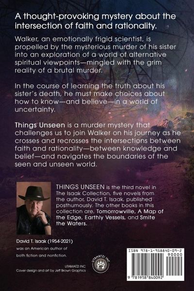 A thought-provoking mystery about the intersection of faith and rationality. Walker, an emotionally frigid scientist, is propelled by the mysterious murder of his sister into an exploration of a world of alternative spiritual viewpoints-mingled with the grim reality of a brutal murder. In the course of learning the truth about his sister's death, he must make choices about how to know-and believe-in a world of uncertainty. Things Unseen is a murder mystery that challenges us to join Walker on his journey as he crosses and recrosses the intersections between faith and rationality-between knowledge and belief-and navigates the boundaries of the seen and unseen world. Read Things Unseen and discover why sometimes the most important things are the ones the eye can't see.
