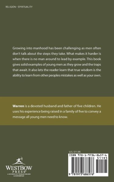 Growing into manhood has been challenging as men often don't talk about the steps they take. What makes it harder is when there is no man around to lead by example. This book gives solid examples of young men as they grow and the traps that await. It also lets the reader learn that true wisdom is the ability to learn from other peoples mistakes as well as your own.
