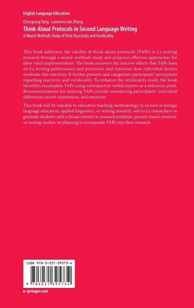 This book addresses the validity of think-aloud protocols (TAPs) in L2 writing research through a mixed methods study and proposes effective approaches for their valid implementation. The book uncovers the reactive effects that TAPs have on L2 writing performance and processes, and examines how individual factors moderate this reactivity. It further presents and categorizes participants' perceptions regarding reactivity and veridicality. To enhance veridicality, the book identifies incomplete TAPs using retrospective verbal reports as a reference point. Recommendations for utilizing TAPs include considering participants' individual differences, recent experiences, and emotions.