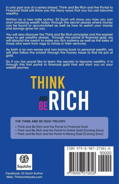 In only part one of a series ahead, Think and Be Rich and the Portal to Financial Gold will show you the many ways that you too can become wealthy. Written by a new indie author, Eli Scott will show you how you can start amassing wealth today through the secret places where money can be found or accumulated as well as how to keep money from being taken right underneath you. You will also discover the Think and Be Rich principles and the easiest ways to get wealthy ahead. Through the portal of financial gold, we will abound the meant to make you rich systems as well as the tales of those who went from rags to riches. As both a no non-sense and non boring book to personal wealth, we will follow the cricket through the money maze to get to his pot of gold. So if you too would like to learn the secrets to become wealthy, it is through this first portal of financial gold that will start you on your wealth journey. The Think and Be Rich Trilogy: Think and Be Rich and the Portal to Financial Gold Think and Be Rich and the Portal to Online Gold (Coming Soon) Think and Be Rich and the Portal to Mining Gold (Coming Soon) Facebook: Eli Scott Author