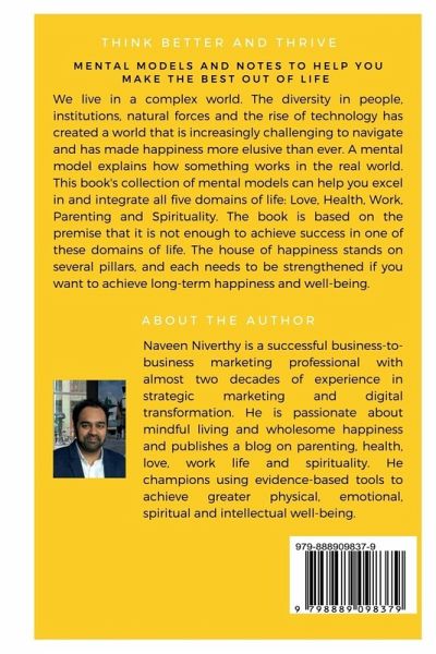 MENTAL MODELS TO HELP YOU MAKE THE BEST OUT OF LIFE: We live in a complex world. The diversity in people, institutions, natural forces and the rise of technology has created a world that is increasingly challenging to navigate and has made happiness more elusive than ever. A mental model explains how something works in the real world. This book's collection of mental models can help you excel in and integrate all five domains of life: Love, Health, Work, Parenting and Spirituality. The book is based on the premise that it is not enough to achieve success in one of these domains of life. The house of happiness stands on several pillars, and each needs to be strengthened if you want to achieve long-term happiness and well-being.