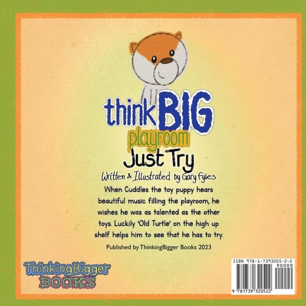 The first book in the Think Big Playroom Growth Mindset series, Just Try is a story to inspire being brave and adventurous and to overcome the fear of failure. When Cuddles the Puppy hears beautiful music filling the playroom, he wishes he was as talented as the other toys. Luckily 'Old Turtle' on the high-up shelf, the monkey twins, Ballerina Shiny Cat and Kitty Frisbee all work together to help him to see that he has to try. Written for younger children, but inspiring all ages to have the courage to adventurously try new things. Adults and corporate teams have responded well to the motivational message.