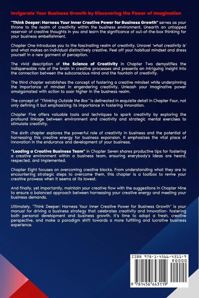 Invigorate Your Business Growth by Discovering the Power of Imagination "Think Deeper: Harness Your Inner Creative Power for Business Growth" serves as your throne to the realm of creativity within the business environment. Unearth an untapped reservoir of creative thoughts in you and learn the significance of out-of-the-box thinking for your business embellishment. Chapter One introduces you to the fascinating realm of creativity. Unravel 'what creativity is' and what makes an individual distinctively creative. Peel off your habitual mindset and dress yourself in a new garment of perception. The vivid description of the Science of Creativity in Chapter Two demystifies the indispensable role of the brain in creative processes and presents an intriguing insight into the connection between the subconscious mind and the fountain of creativity. The third chapter establishes the concept of fostering a creative mindset while underpinning the importance of mindset in engendering creativity. Unleash your imaginative power amalgamated with action to soar higher in the business realm. The concept of "Thinking Outside the Box" is delineated in exquisite detail in Chapter Four, not only defining it but emphasizing its importance in fostering innovation. Chapter Five offers valuable tools and techniques to spark creativity by exploring the profound linkage between environment and creativity and strategic mental exercises to stimulate creativity. The sixth chapter explores the powerful role of creativity in business and the potential of harnessing this creative energy for business expansion. It emphasizes the vital place of innovation in the endurance and development of your business. "Leading a Creative Business Team" in Chapter Seven shares productive tips for fostering a creative environment within a business team, ensuring everybody's ideas are heard, respected, and implemented. Chapter Eight focuses on overcoming creative blocks. From understanding what they are to encountering strategic steps to overcome them, this chapter is a toolbox to revive your creative prowess when it seems at its lowest. And finally, yet importantly, maintain your creative flow with the suggestions in Chapter Nine to ensure a balanced approach between harnessing your creative energy and meeting your business demands. Ultimately, "Think Deeper: Harness Your Inner Creative Power for Business Growth" is your manual for driving a business strategy that celebrates creativity and innovation- fostering both personal development and business growth. It's time to adopt a fresh, creative perspective, and make a paradigm shift towards a more fulfilling and lucrative business experience.