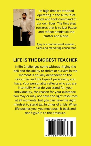 This book is greatly inspired by one quote from Naval Ravikant; "Be the person you want to write the book about". Challenges come without ringing the bell and the ability to thrive or survive in the moment is equally dependent on the resources and the type of personality you have. Your personality reflects who you are internally, what do you stand for, your individuality, the reason for your existence. You may or may not have the right resources at all moments, but you can have the right mindset to stand tall in times of crisis. The Skills needed to thrive in this competitive world can be learnt only with the right attitude and a principled focused living mentioned in the book. Ajay provides an Out Of The Box Thinking approach to come victorious in every endeavor you take, touching base on some of the most critical things very few people talk about, which form the core of one's personality.