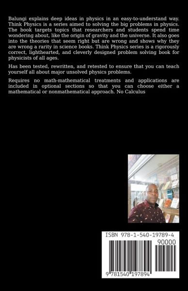 Balungi explains deep ideas in physics in an easy-to-understand way. Think Physics is a series aimed to solving the big problems in physics. The book targets topics that researchers and students spend time wondering about, like the origin of gravity and the universe. It also goes into the theories that seem right but are wrong and shows why they are wrong a rarity in science books. Think Physics series is a rigorously correct, lighthearted, and cleverly designed problem solving book for physicists of all ages. Has been tested, rewritten, and retested to ensure that you can teach yourself all about major unsolved physics problems. Requires no math-mathematical treatments and applications are included in optional sections so that you can choose either a mathematical or nonmathematical approach. No Calculus
