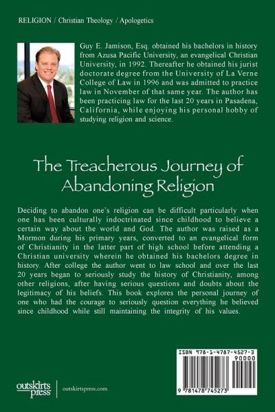 Deciding to abandon one's religion can be difficult particularly when one has been culturally indoctrinated since childhood to believe a certain way about the world and God. The author was raised as a Mormon during his primary years, converted to an evangelical form of Christianity in the latter part of high school before attending a Christian university wherein he obtained his bachelors degree in history. After college the author went to law school and over the last 20 years began to seriously study the history of Christianity, among other religions, after having serious questions and doubts about the legitimacy of his beliefs. This book explores the personal journey of one who had the courage to seriously question everything he believed since childhood while still maintaining the integrity of his values.